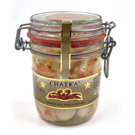 Chatka, conserva de cangrejo real, es conocida mundialmente por ser uno de los productos gourmet por excelencia. Capturado en las frías aguas de los mares de Okhhotsk, Bering y Barents, se elabora artesanalmente a partir de las patas y carne de este exclusivo marisco. Chatka está considerada una de las mejores marcas de producto de mar del mundo, con una textura y sabor excelentes.